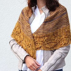 Jalava is a circular shawl witch combines “grain d’orme” stitch and garter stitch.