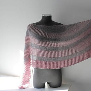 Le châle sur la photo a été tricoté avec 2 écheveaux de Lil Single de Lil Weasel, coloris polaris et inox.