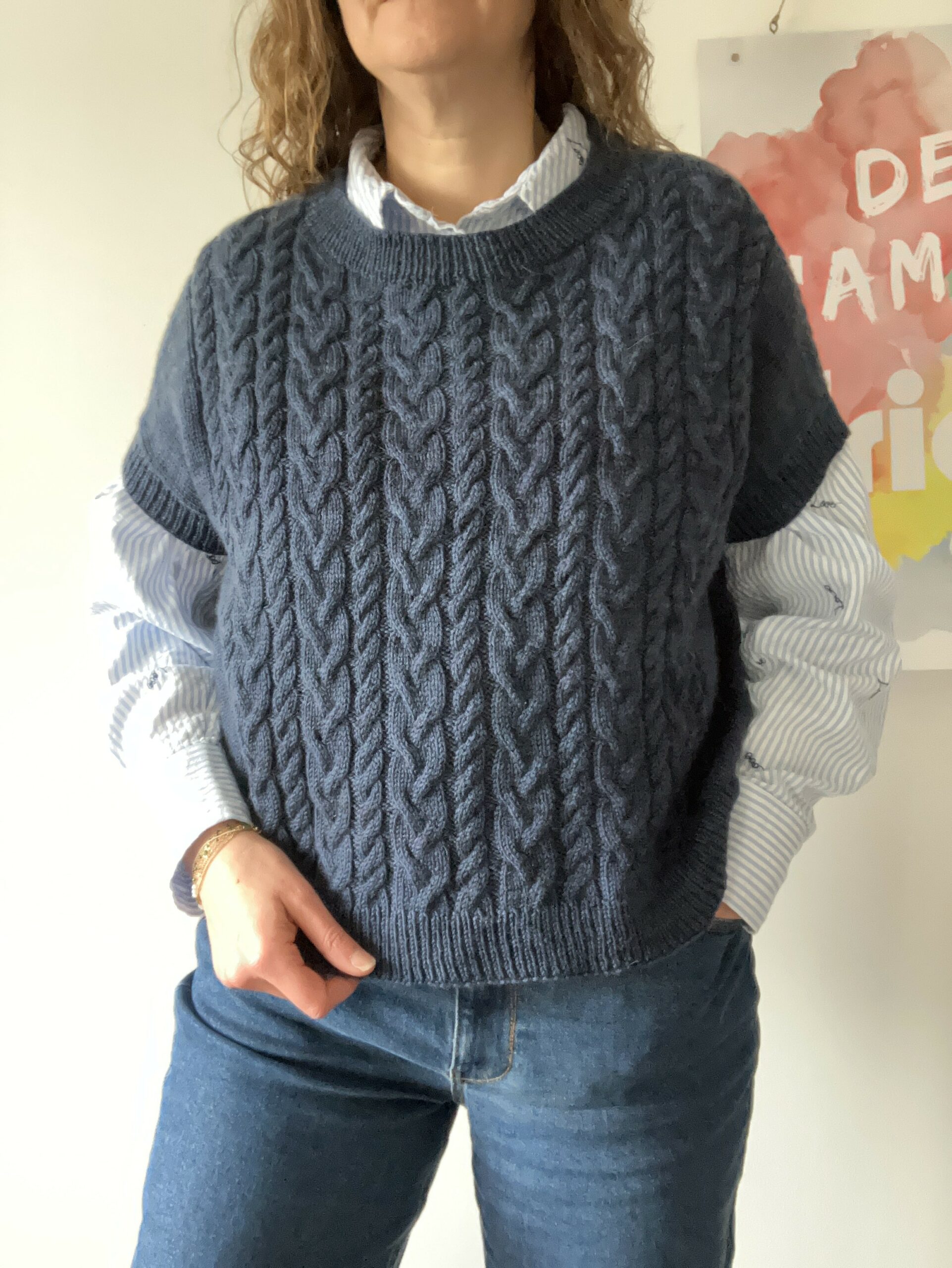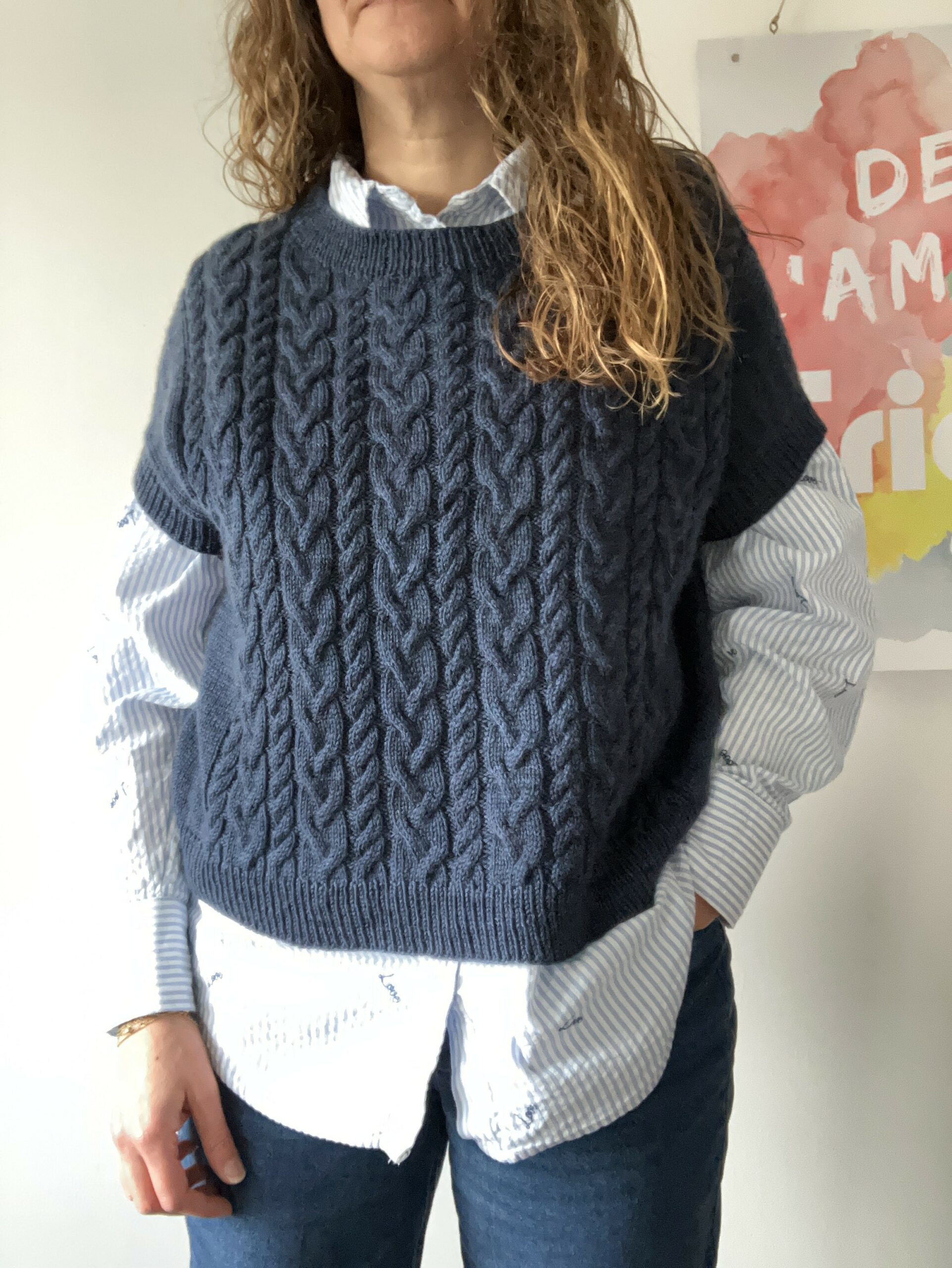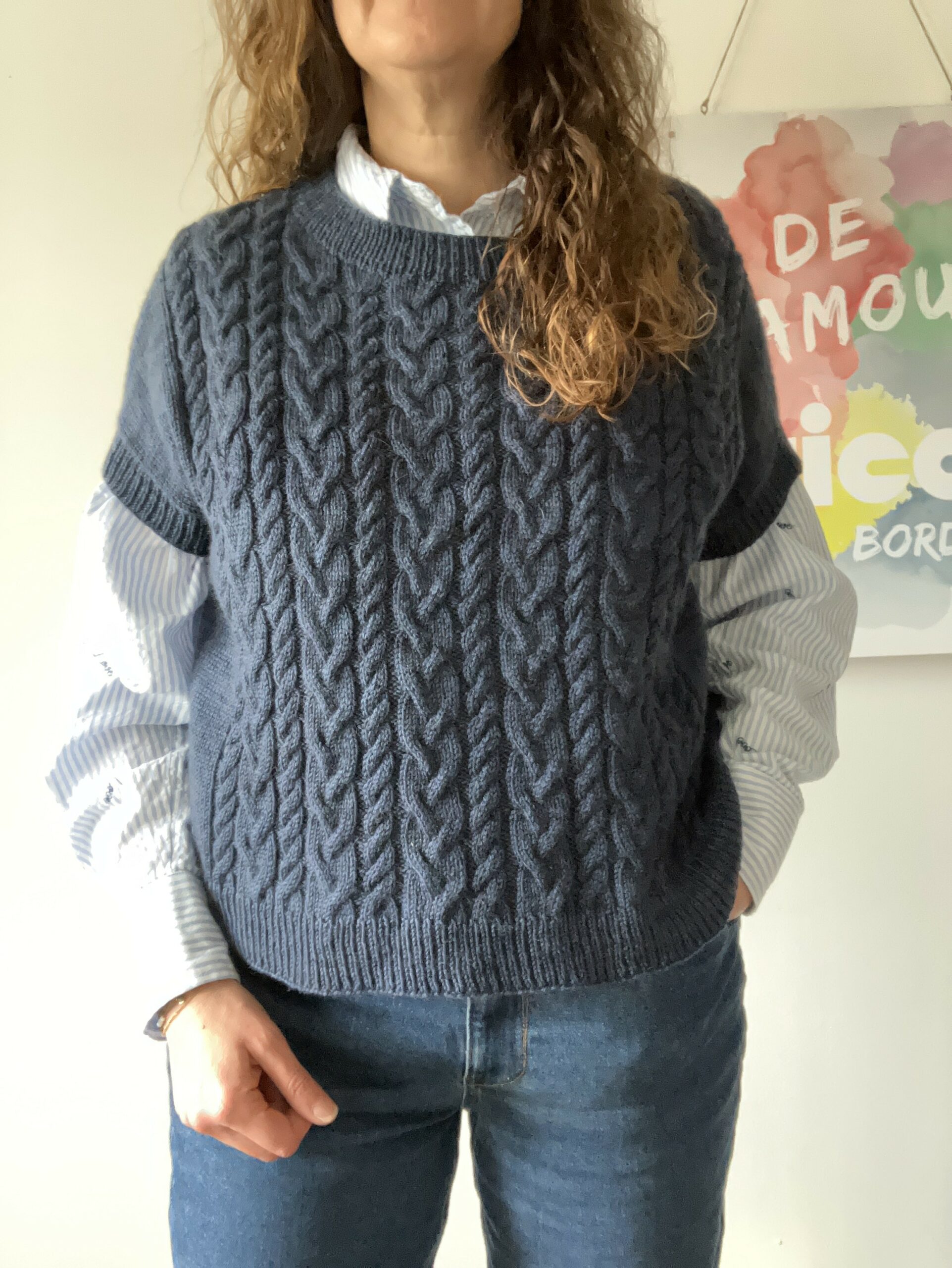 Le pull se porte avec une aisance positive d’environ 25 cm.