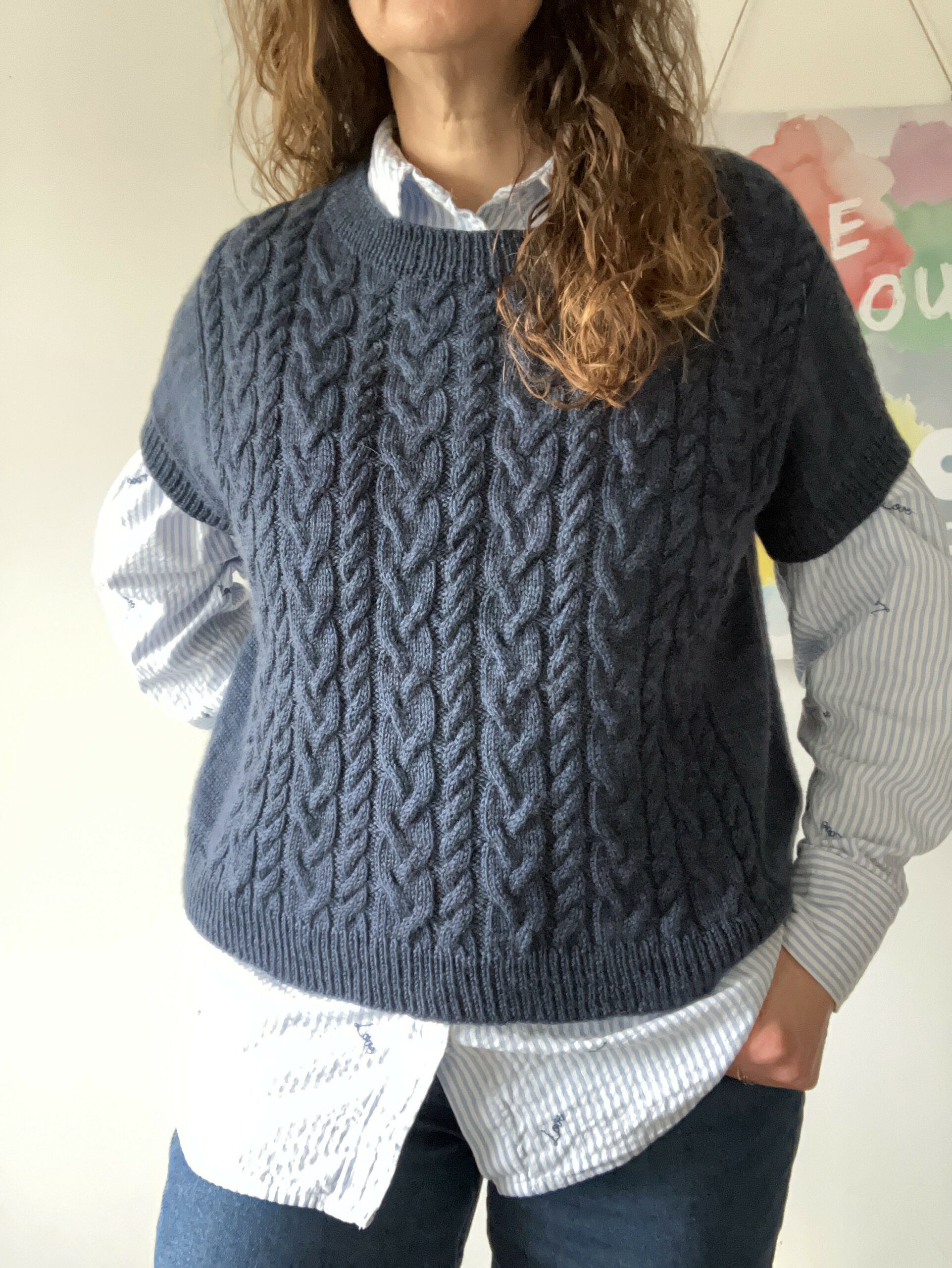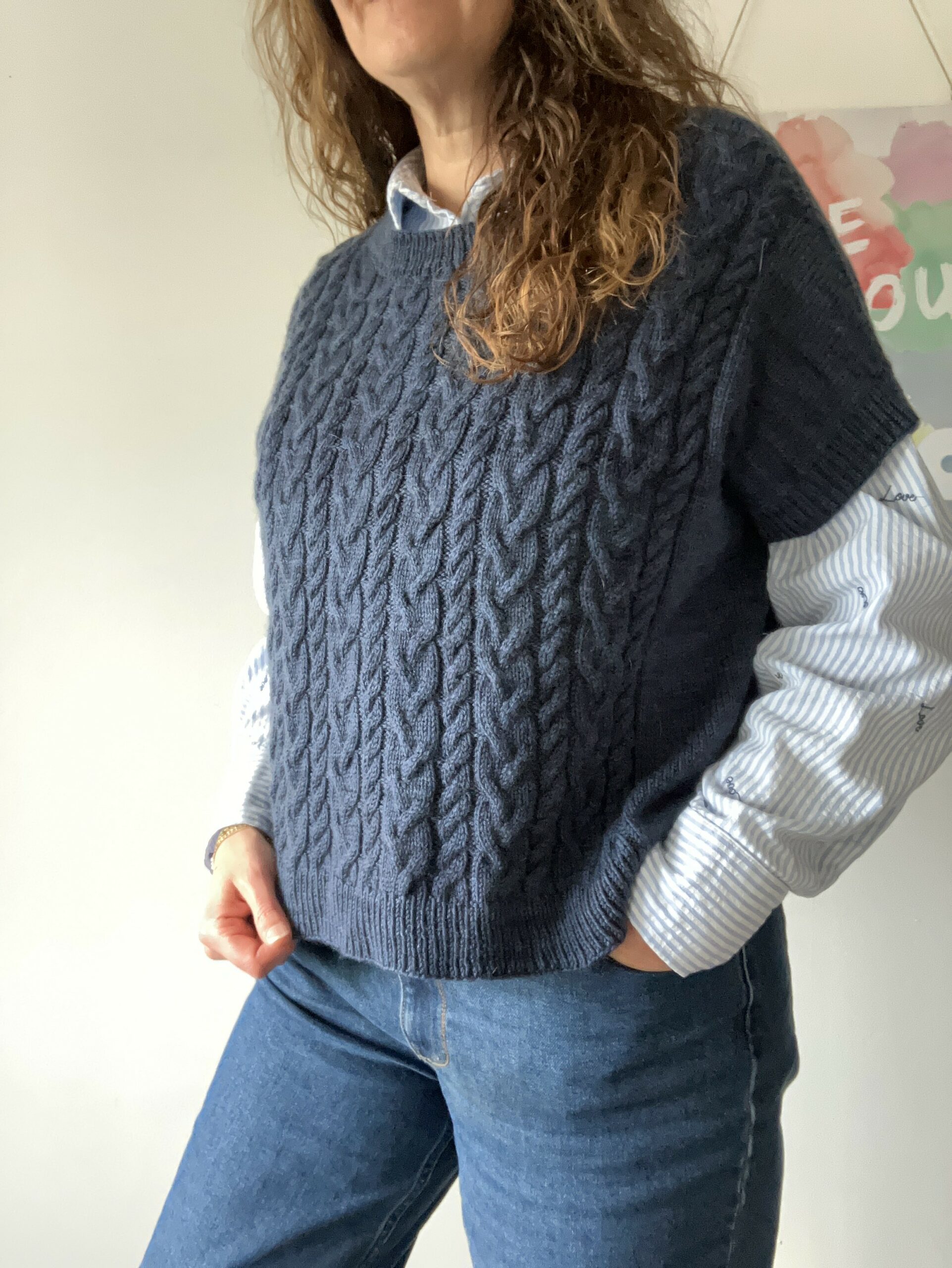 Meren est un pull tricoté en jersey avec un panneau de torsades sur l’avant.